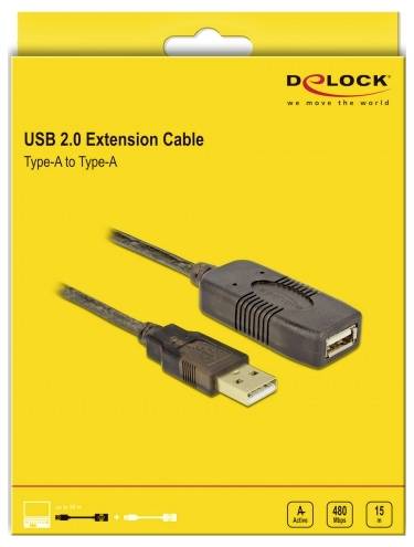 Delock USB kábel USB 2.0 USB-A zástrčka, USB-A zásuvka 15.00 m čierna 82689