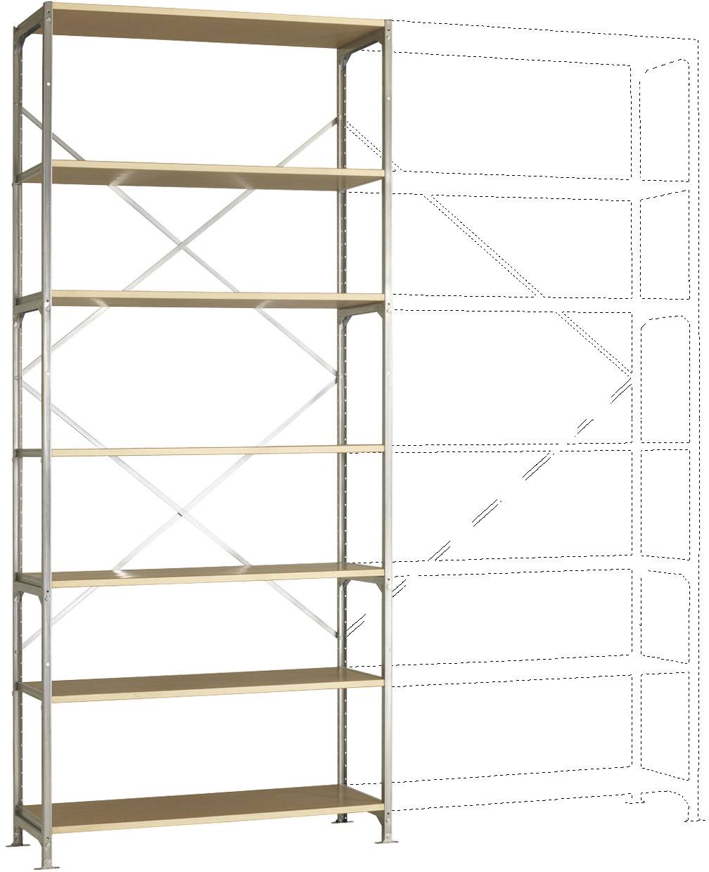 Manuflex RM2239 Široký zásuvný regál so 7 policami z kompozitného dreva, VxŠxH = 3000 x 1280 x 1000 mm, (š x v x h) 1250