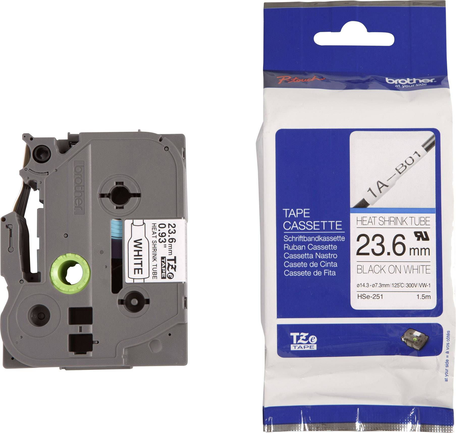 Páska na teplom zmršťovacie trubice Brother HSE-251 Farba pásky: biela farba písma: čierna 23.6 mm 1.5 m