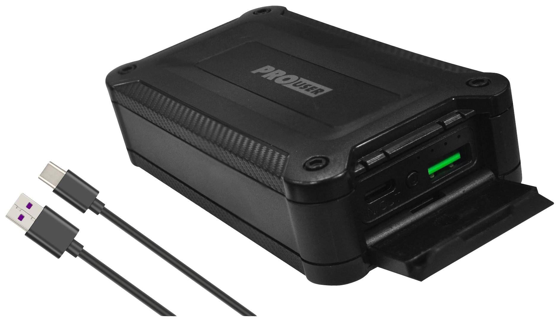 ProUser powerbanka Li-Ion akumulátor, 10000 mAh, Quick Charge 3.0, Power Delivery 3.0, čierna, súčasné nabíjanie a vybíj
